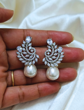 Cubic Zirconia(American diamond) design with a big size pearl drop.